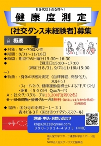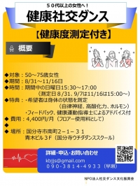 8/31~11/16 健康づくりのための「健康社交ダンス」3カ月コース開講!