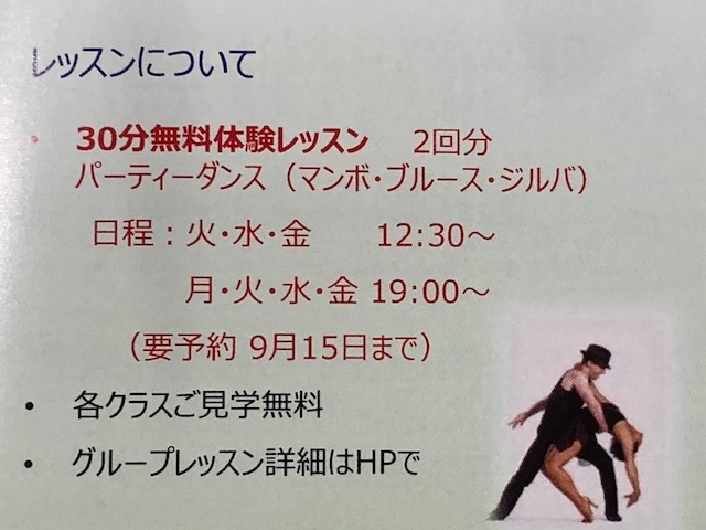 9月15日までパーティーダンス30分レッスンを2回無料